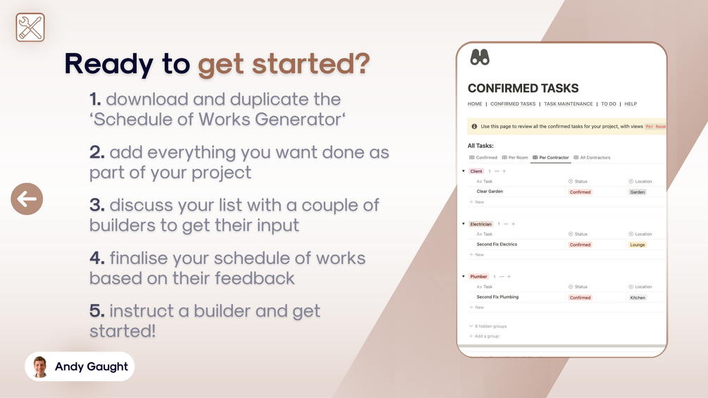 - Finalise your Schedule of Works based on their feedback