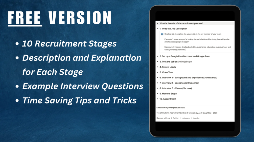 I've now recruited 5 VAs and have worked with other businesses to find their own VAs too. So grab this guide and let me know what you think..