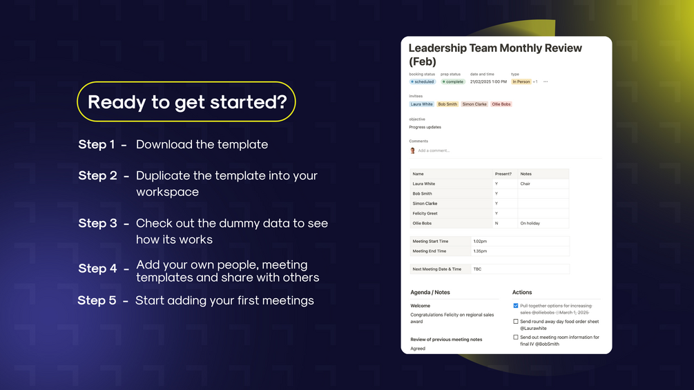 ✔️ Example meeting note template - check out the example template and create your own, to bring consistency to your meetings