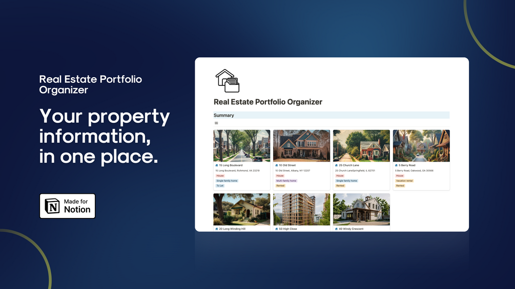 That's why I created this simple 'Real Estate Portfolio Organizer' for Notion.